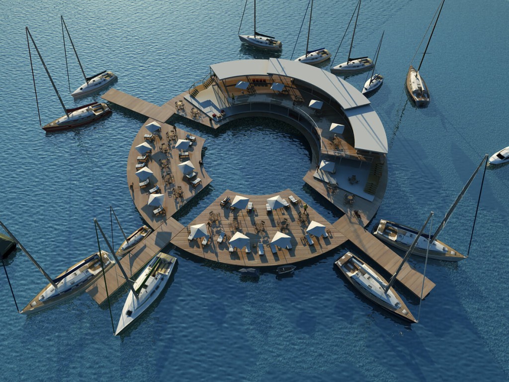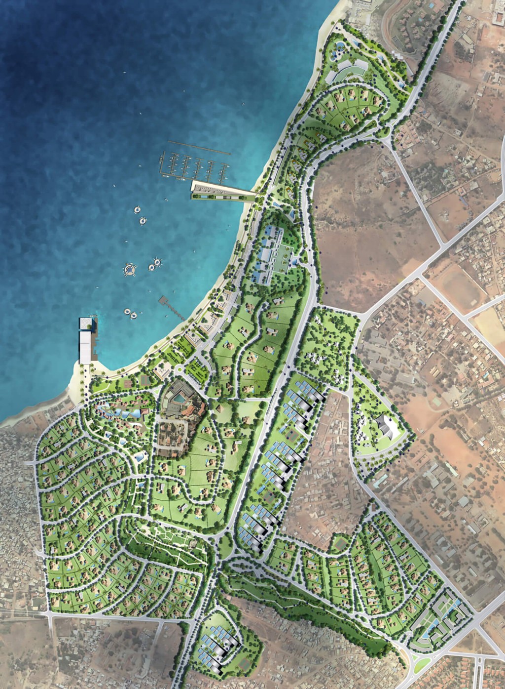O caminho natural das águas e a vegetação existente constituem o principal elemento estruturante do projeto, organizando os diferentes núcleos do empreendimento. Foram projetados hotéis, marina, museus, além do passeio em frente ao mar, que conforma um percurso em que lazer, esportes, entretenimento e compras acontecem num mesmo lugar. São elementos arquitetônicos que funcionam como landmarks e que se situam em locais de destaque.