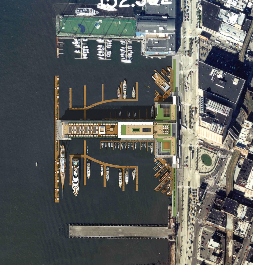 Localizado estrategicamente no coração do vasto parque linear de oito quilômetros, o Pier 57 materializa a visão ampla dos designers, que compreenderam a relevância da qualidade de vida e do acesso público à beira-mar da cidade. Isso pressagia um centro vibrante de atividades públicas, semelhante aos famosos waterfronts encontrados nas grandes cidades europeias, onde a atividade comercial, a música ao vivo e a arte se entrelaçam em perfeita harmonia.